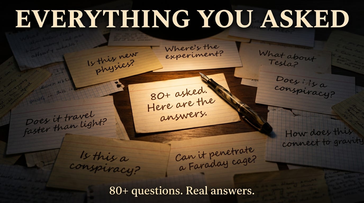 80+ readers replied to the paper launch. Skeptics, engineers, physicists, builders. These were the questions that came up most. Here are the answers.